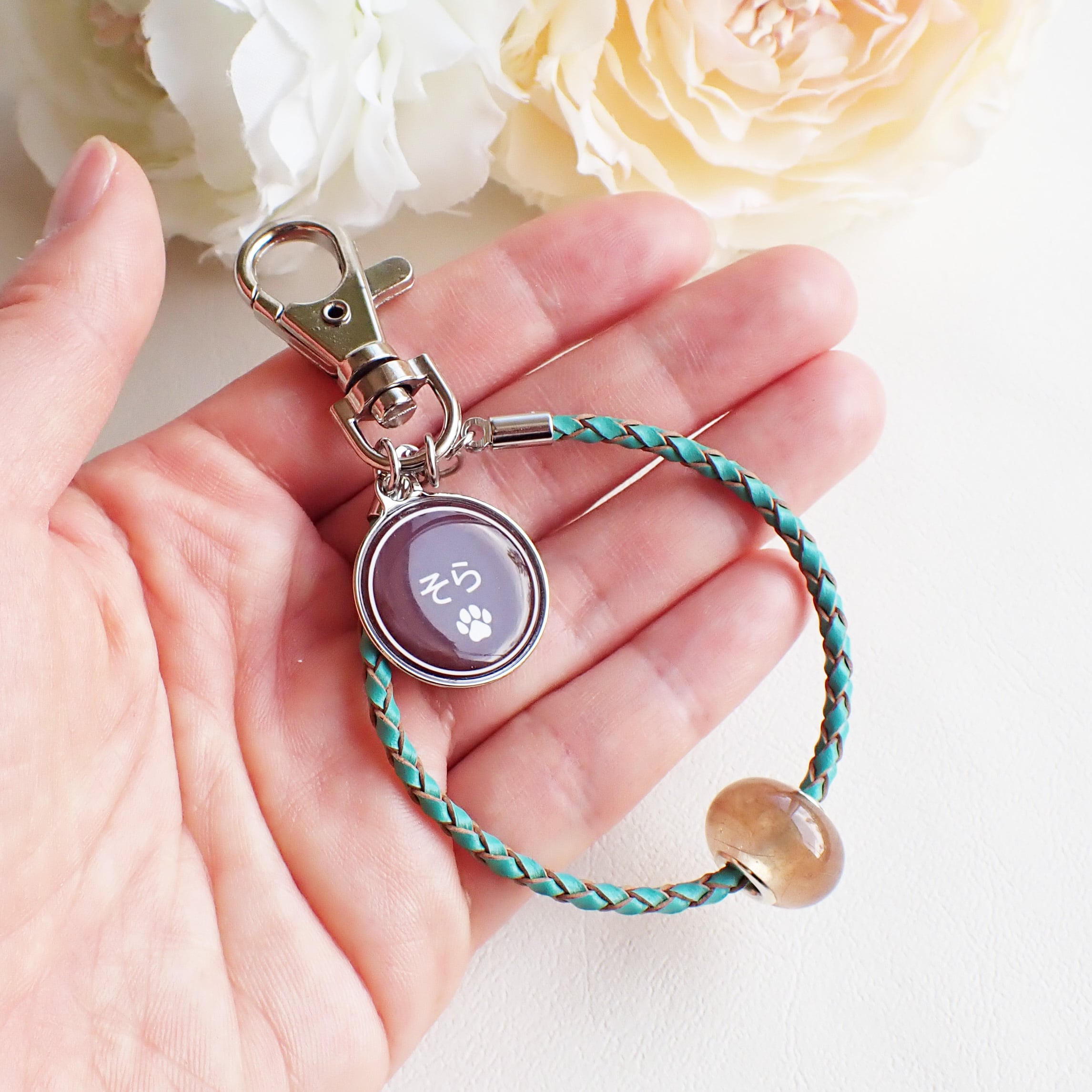 ペットの毛から作るジュエリービーズ キーホルダー 名前チャーム付き